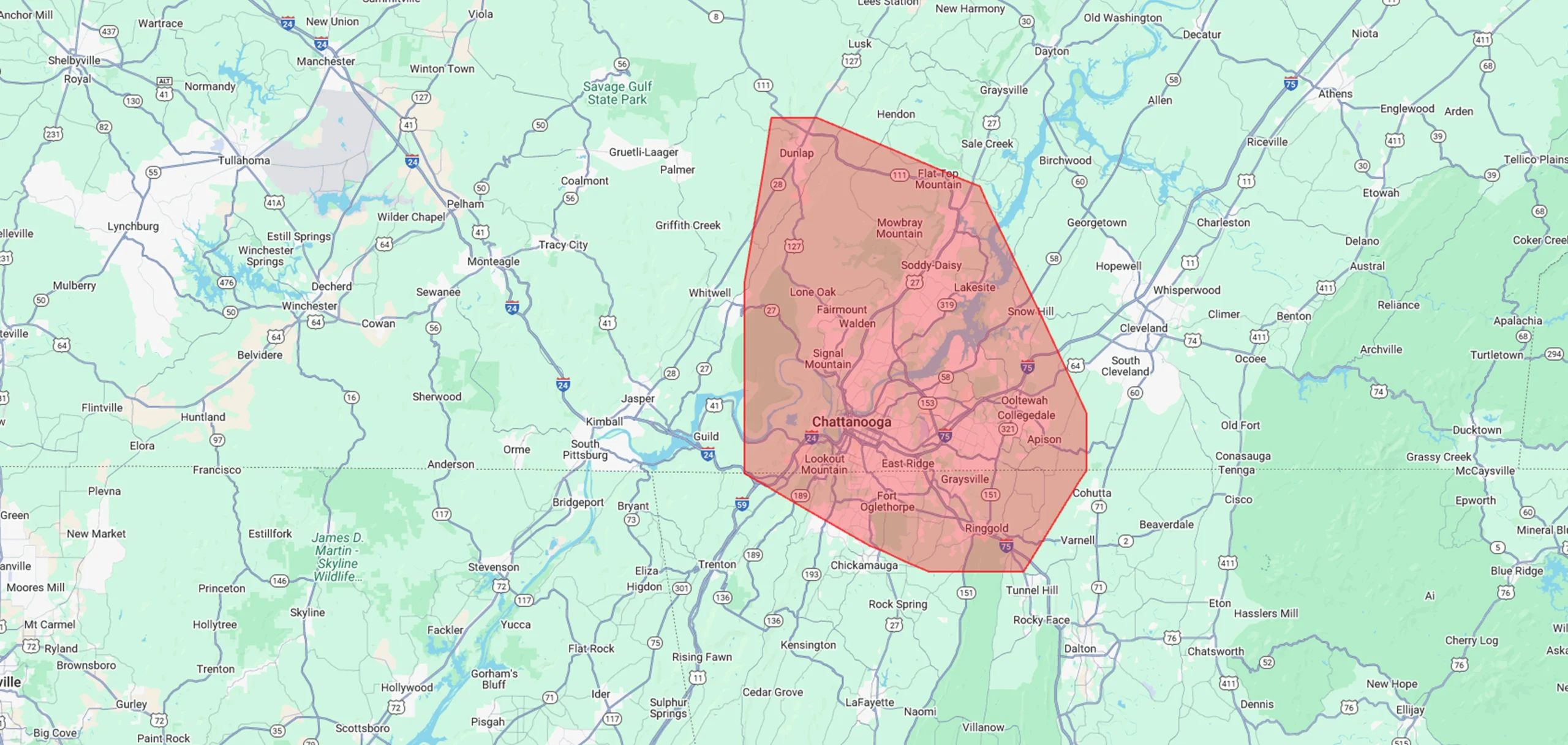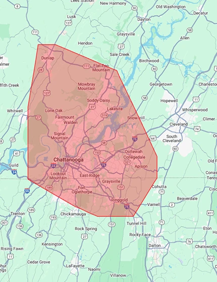 We proudly provide junk removal throughout Chattanooga and surrounding Tennessee and North Georgia communities: